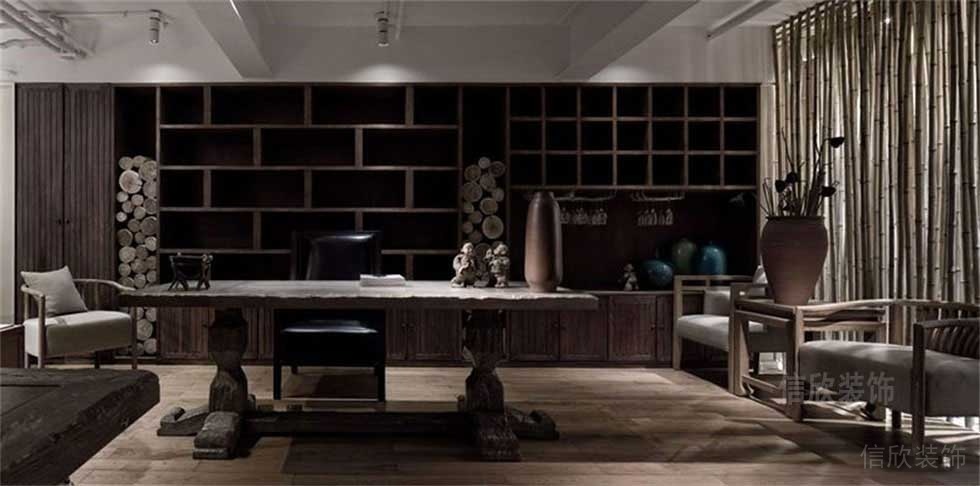 總經辦的裝修設計,拋棄了傳統中式紅木家具雕梁畫柱的復雜設計,選用更自然更貼近生活的原木風設計,根雕木藝的辦公桌,木柴裝飾的書柜,回歸最原始和簡單的生活方式。
