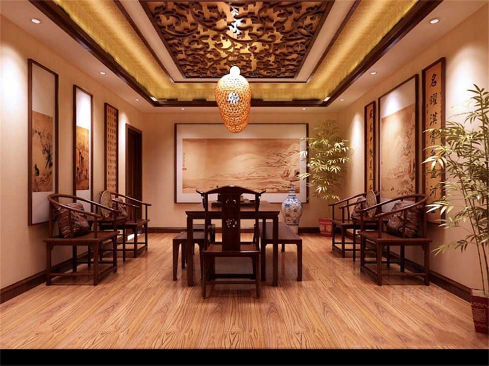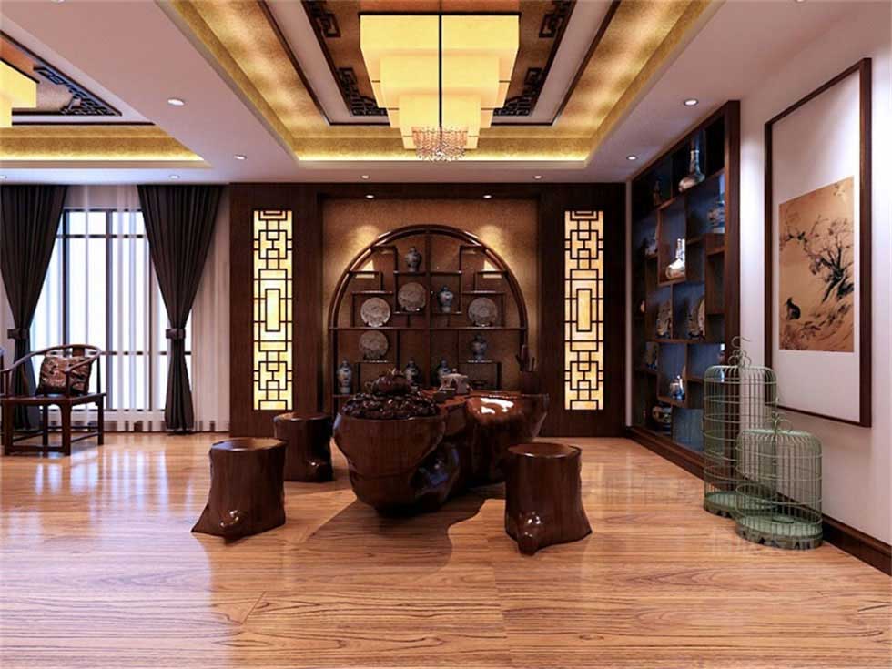 設計理念:本案是一所中式風的古玩字畫展廳裝修設計案例,中式古典風格的室內設計,是在室內布置、線形、色調及家具、陳設的造型等方面,吸取傳統裝飾”形”、”神”的特征。例如吸取我國傳統木構架建筑室內的藻井、天棚、掛落、雀替的構成和裝飾,明、清家具造型和款式特征。中式古典風格常給人以歷史延續和地域文脈的感受,它使室內環境突出了民族文化淵源的形象特征。中國是個多民族國家,所以談及中式古典風格實際上還包含民族風格,各民族由于地區、氣候、環境、生活習慣、風俗、宗教信仰以及當地建筑材料和施工方法不同,具有獨特形式和風格,主要反映在布局、形體、外觀、色彩、質感和處理手法等方面。